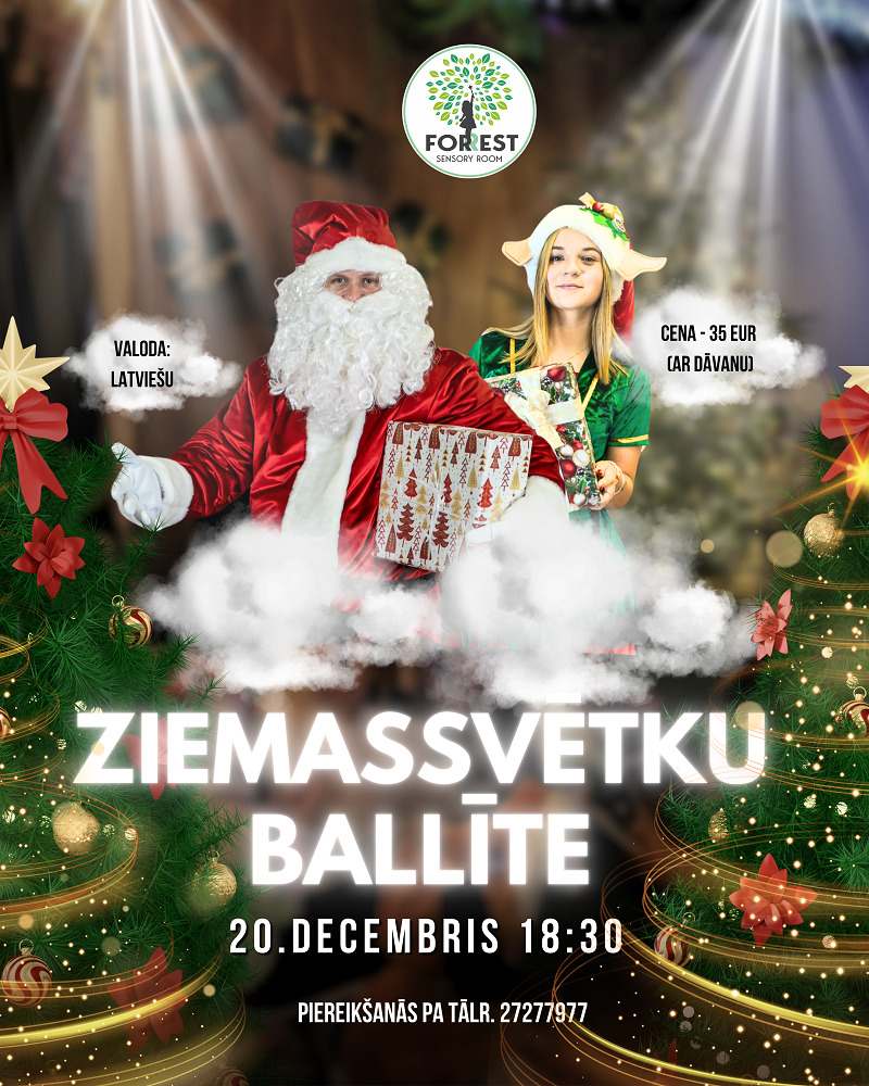 Mīļie vecāki, aicinām jūs un jūsu bērnus (no 4 gadiem) uz brīnumainu svētku piedzīvojumu Sensory Room "Forest"! Pasākums notiks 20.decembrī pl.18.30.