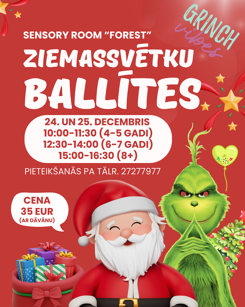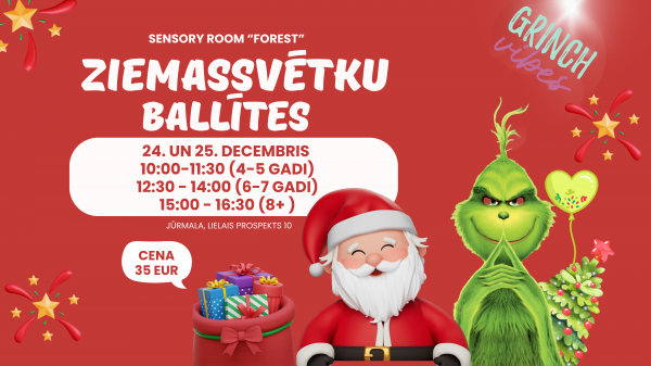 Mīļie vecāki, aicinām jūs un jūsu bērnus (no 4 gadiem) uz brīnumainu svētku piedzīvojumu Sensory Room "Forest"! Pasākums notiks 20.decembrī pl.18.30.